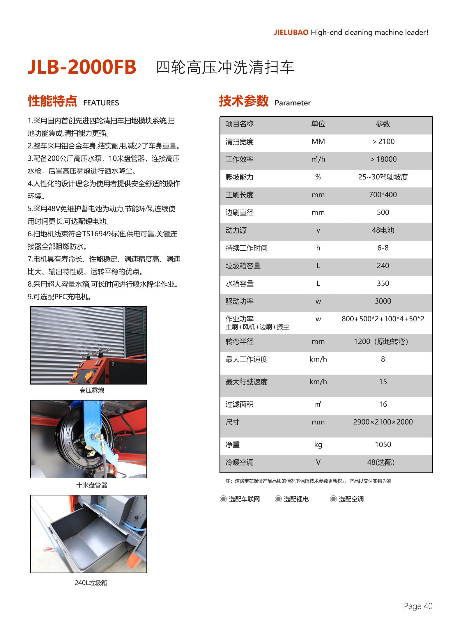 1.采用国内四轮清扫车扫地模块系统,扫地功能集成,清扫能力更强。